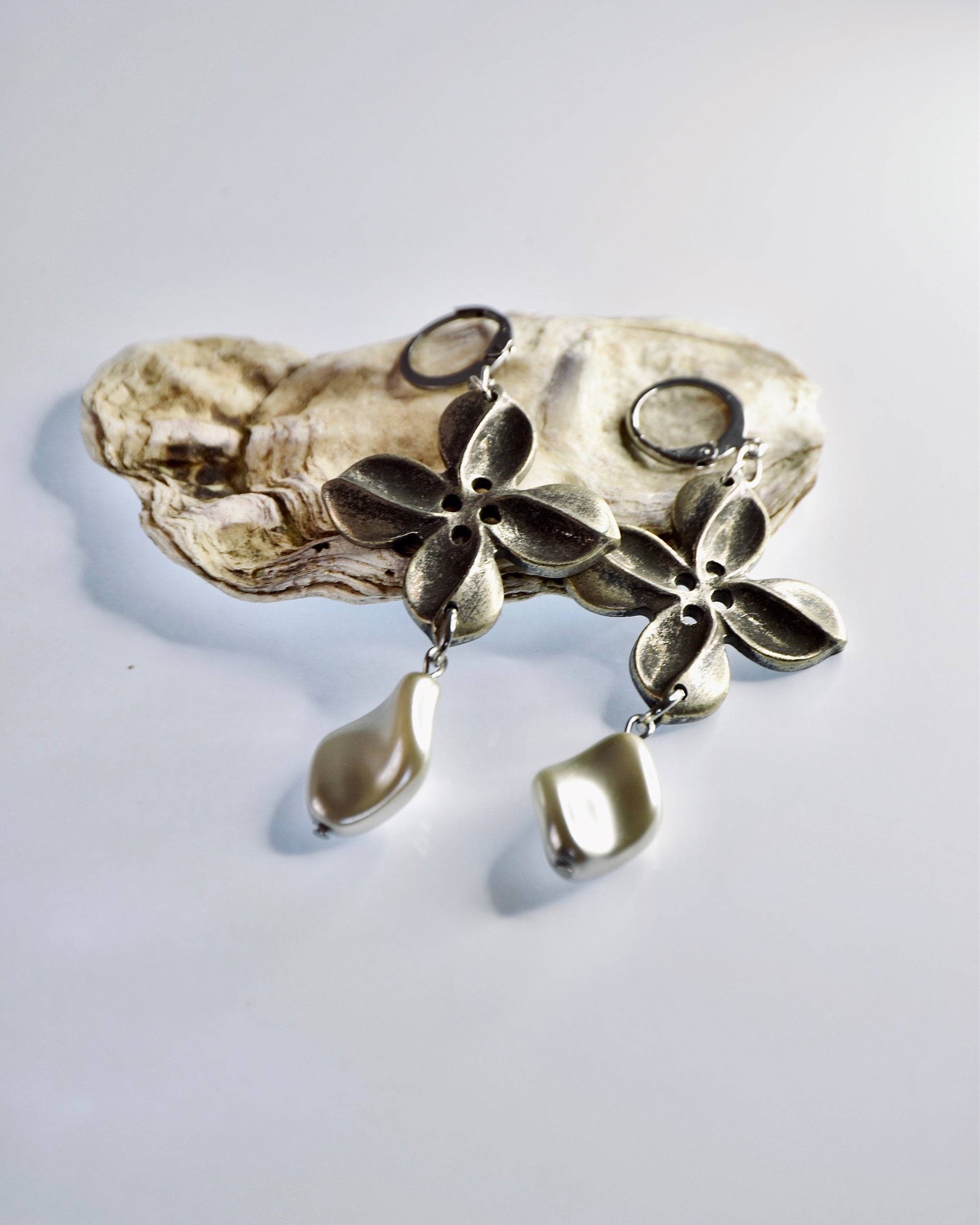 Les boucles d’oreilles Cytise sont ornées de boutons détournés et d'une perle nacrée torsadée, créant une harmonie parfaite entre douceur et sophistication. Ses apprêts en acier inoxydable garantissent la qualité du modèle.