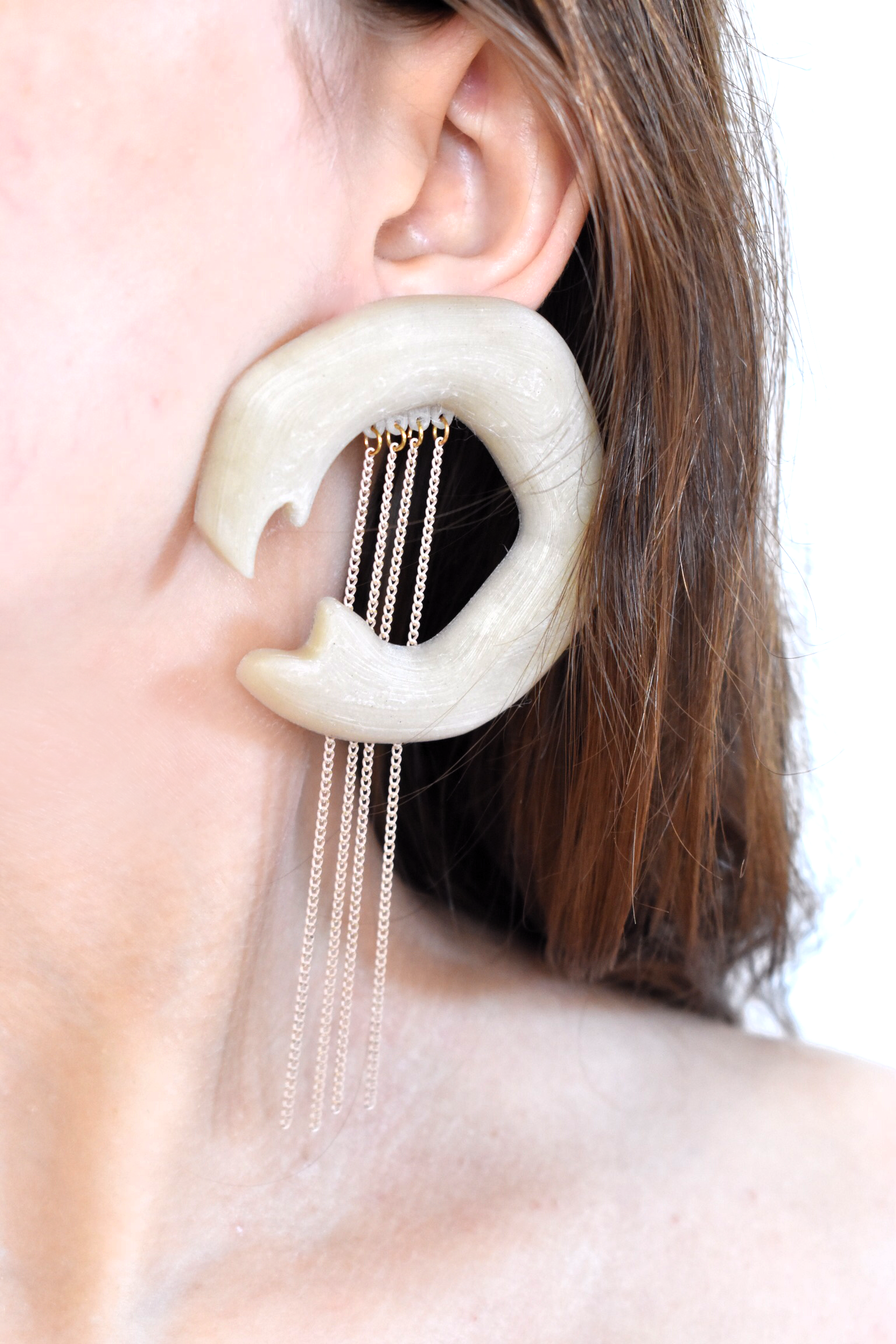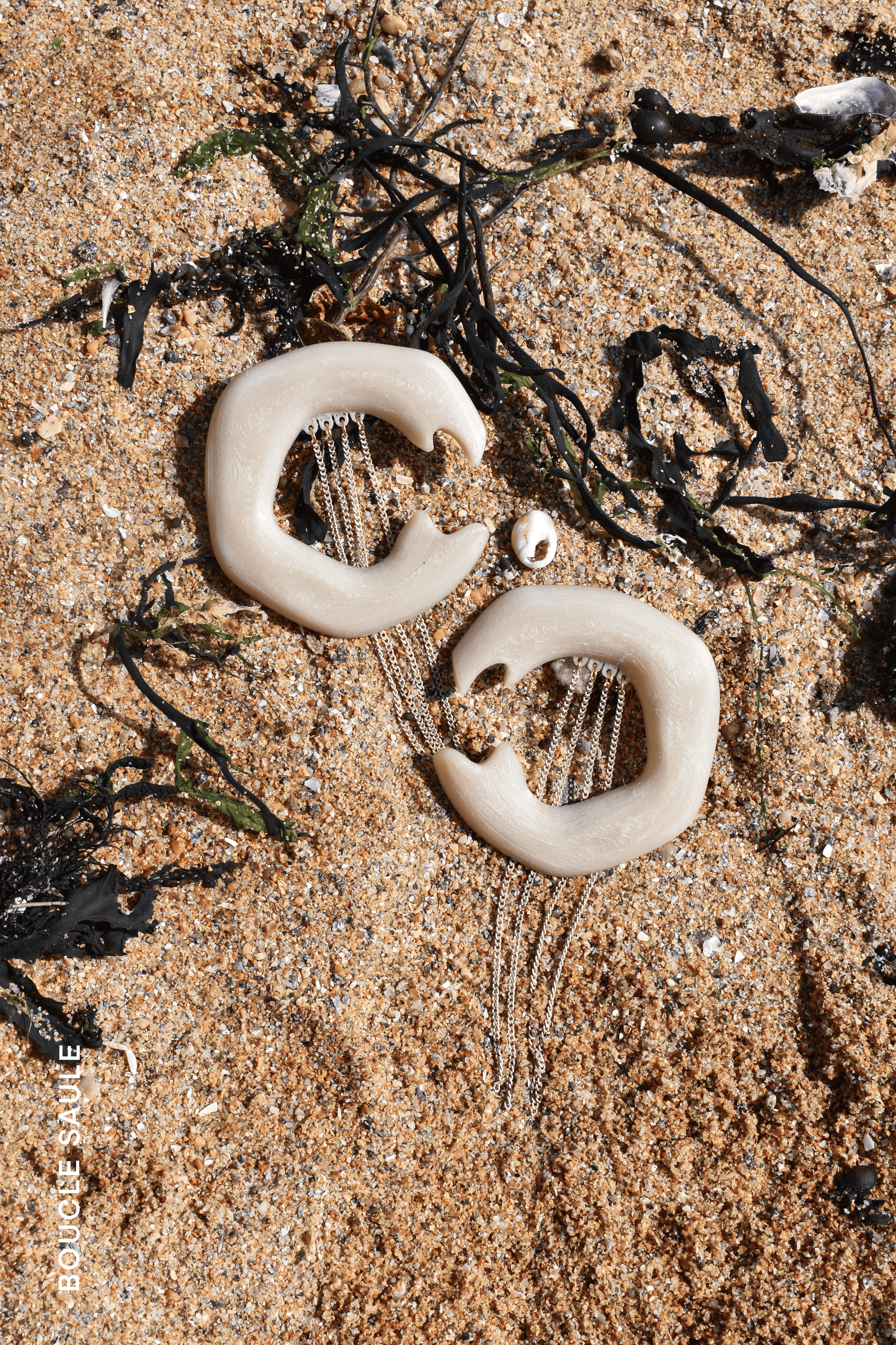 Ce bijou a été réaliser avec un matériau biosourcée fait à partir de coquille d’huître recyclé issue des déchets de la restauration française.